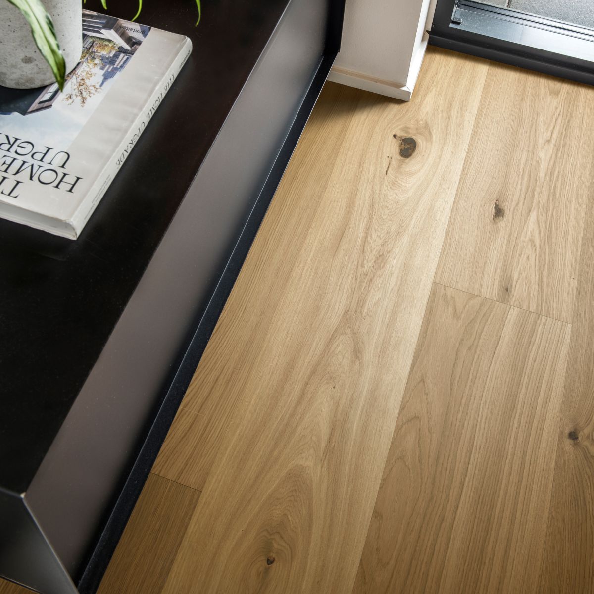Plankformatet i XXL skapar en lugn och sammanhängande golvyta med färre skarvar, vilket ger rummet ett mer öppet och exklusivt intryck. Kombinationen av härdad yta och golvets stabila konstruktion gör det väl lämpat för både privata hem och miljöer med hög belastning.