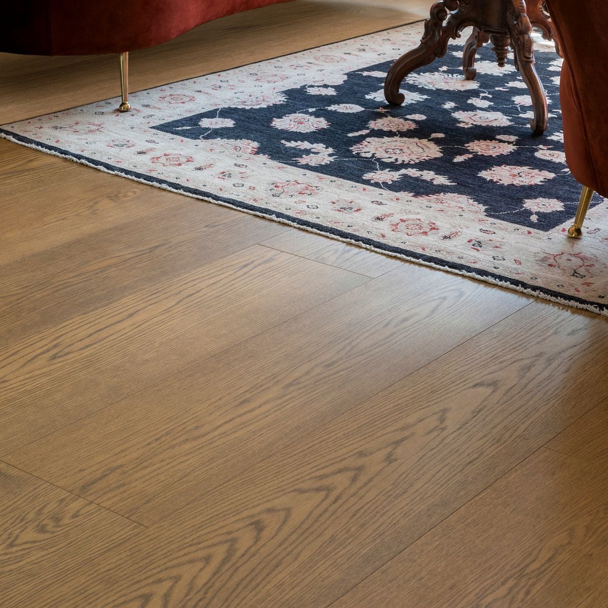 Plankformatet i XXL skapar en lugn och sammanhängande golvyta med färre skarvar, vilket ger rummet ett mer öppet och exklusivt intryck. Kombinationen av härdad yta och golvets stabila konstruktion gör det väl lämpat för både privata hem och miljöer med hög belastning.