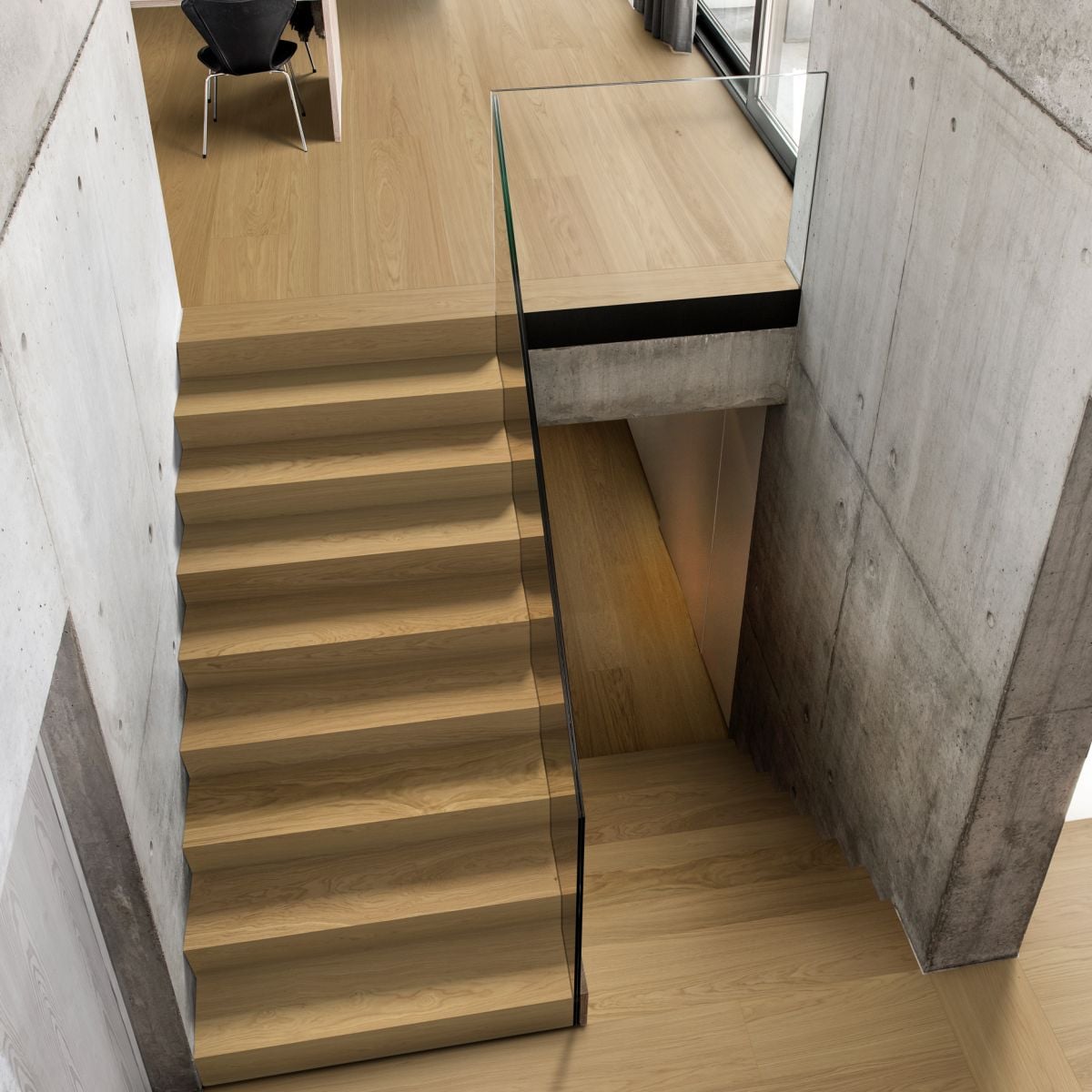 Den mattlackade ytan skyddar effektivt mot vardagligt slitage, minskar reflexer och bevarar samtidigt känslan av äkta trä. Resultatet är ett golv med ett ljust, harmoniskt och tidlöst uttryck som passar i många olika typer av interiörer.