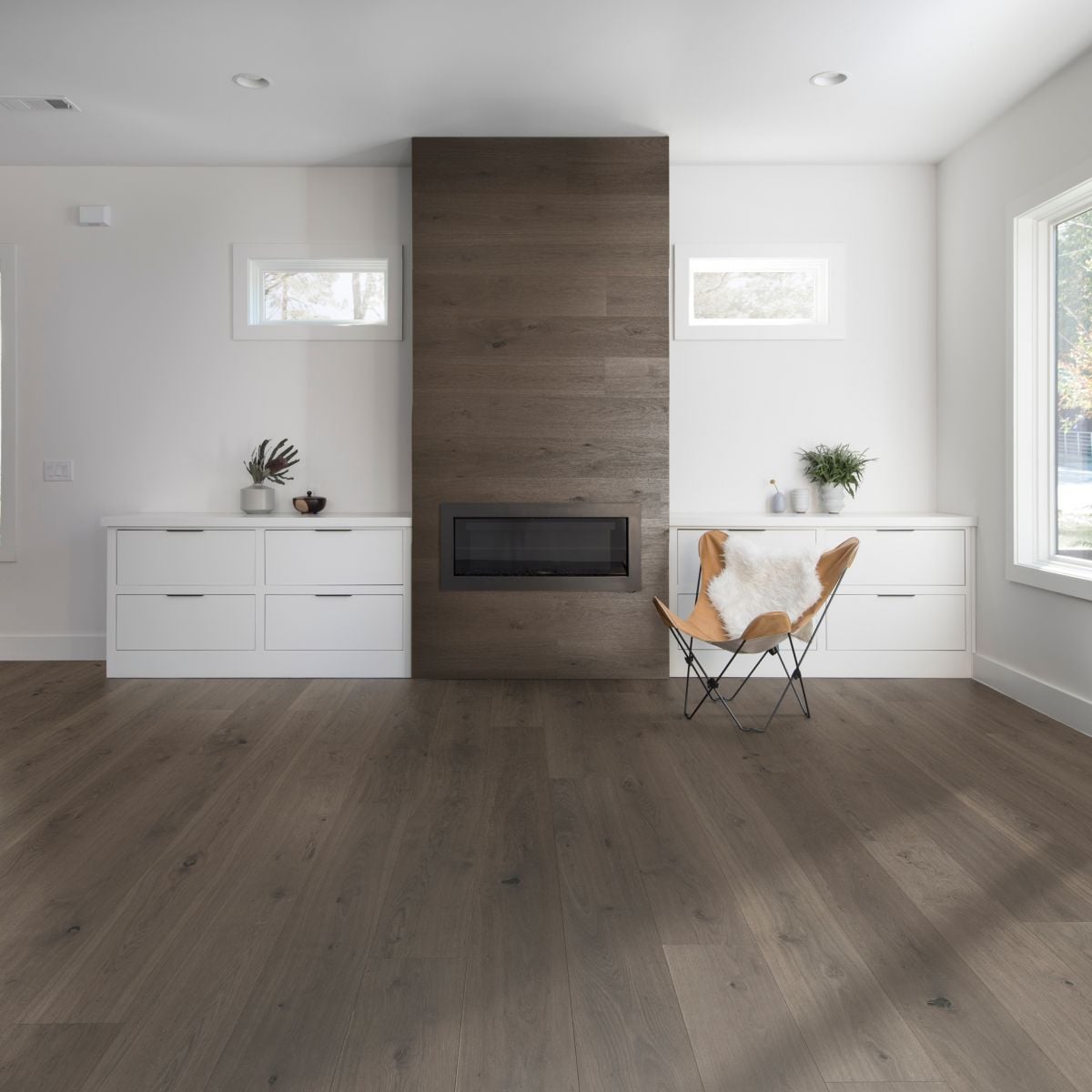 grått trägolv som känns premium och samtidigt är mycket slitstarkt.