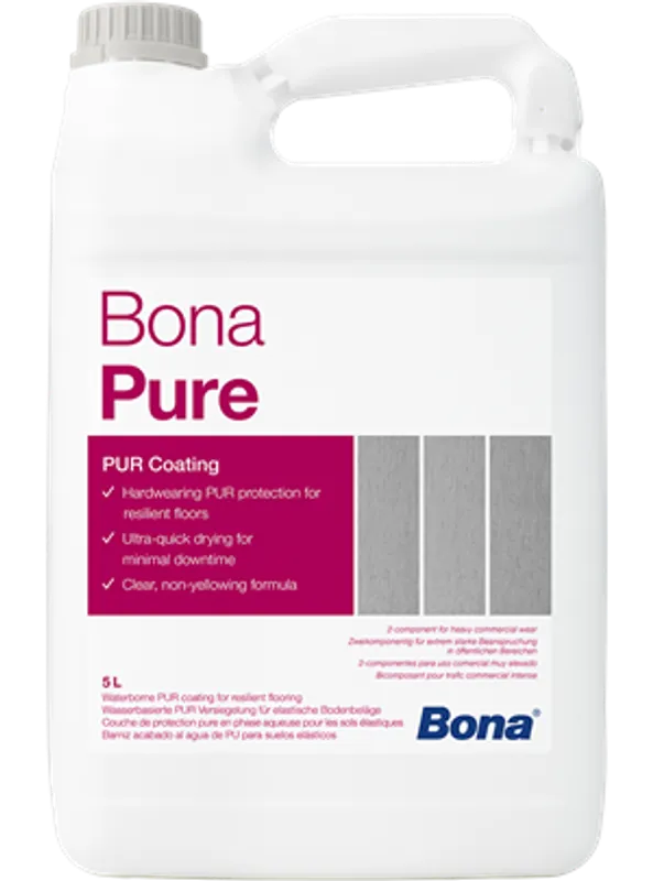 Bona Pure Extra Matt är ett slitstarkt, elastiskt och vattenburet tvåkomponents PUR-skydd utvecklat