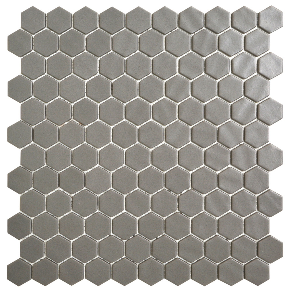 Hexagon Collection Grå mosaik 30,1×29,0 är ett golv med varm, exklusiv karaktär och behaglig ton.