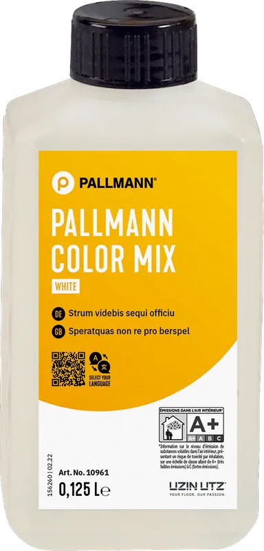 Pallmann Color Mix White 200 ml är ett vitt pigmentkoncentrat som används för att nyansera Pallmanns lacker och oljor. Med Color Mix White kan du skapa ljusare, mer skandinaviska uttryck på ditt trägolv och finjustera kulören efter önskemål.