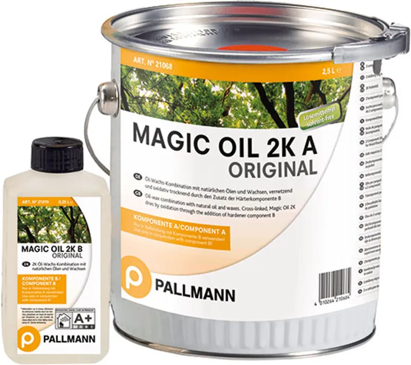 Pallmann Magic Oil 2-K, original 1 lit är en lösningsmedelsfri 2-komponents parketthårdvaxolja för professionell behandling av trägolv. Oljan kombinerar naturliga oljor och vaxer som tränger djupt in i träet och ger en slitstark, smutsavvisande yta med behaglig lyster.