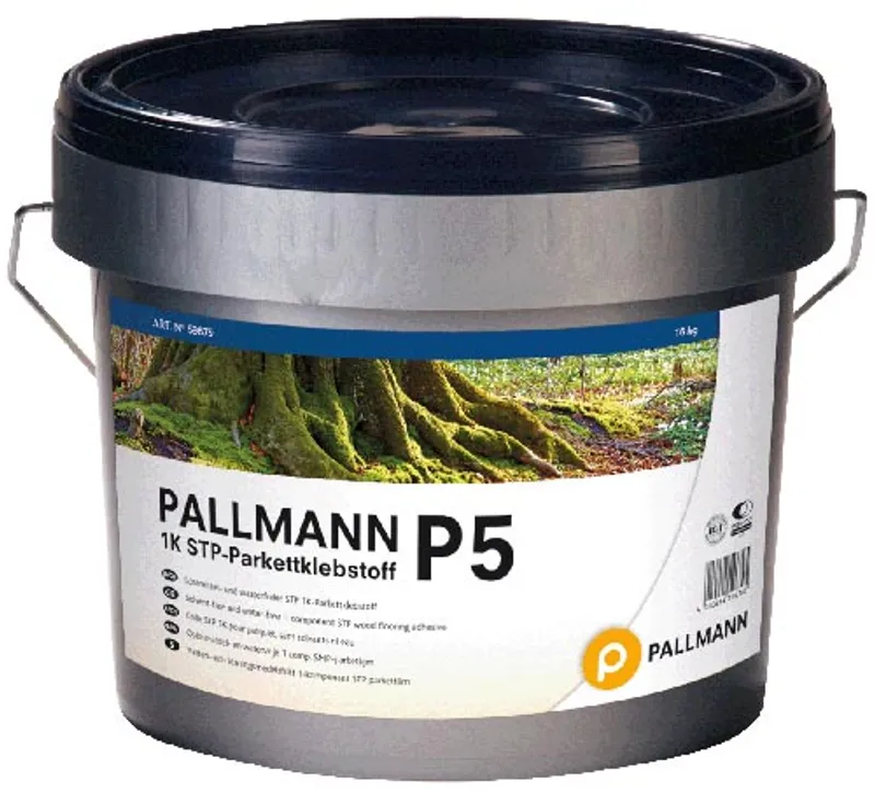 Pallmann P5 är ett lösningsmedelsfritt 1-komponents STP-baserat parkettlim med ett hårt elastiskt