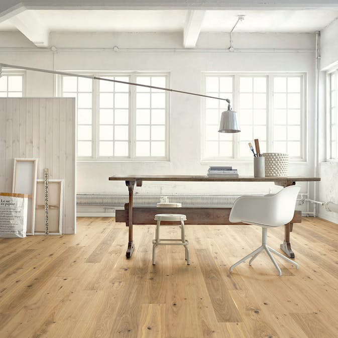 kvistar, variation och tydlig struktur. Den ultramatta råträ-lacken ger golvet ett uttryck