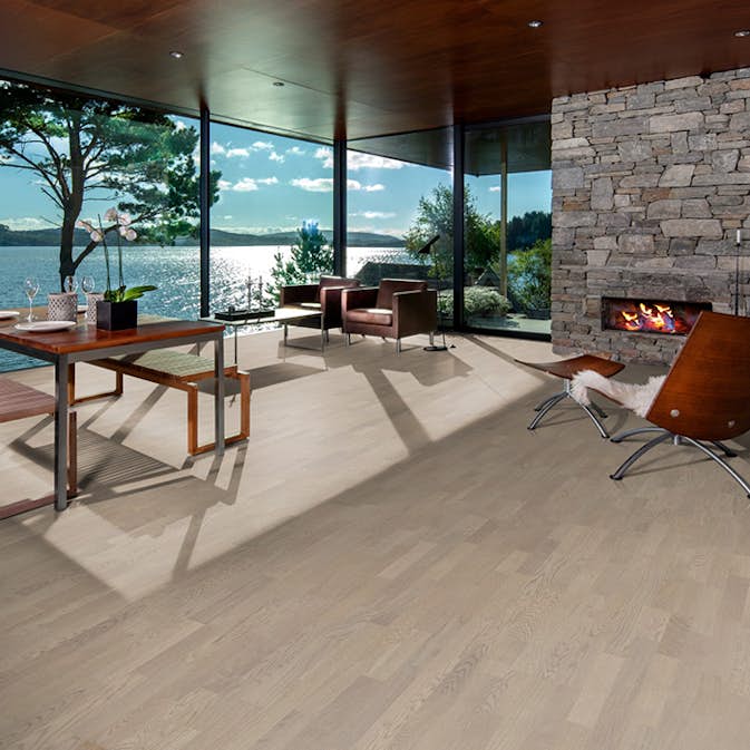 Trägolv Kährs Ek Twilight 3-Stav Ultramattlackad är ett golv med varm, exklusiv karaktär och behaglig ton i ek med 3-stav-mönster och en yta i ultramatt lack färgtonen: ljust, natur.