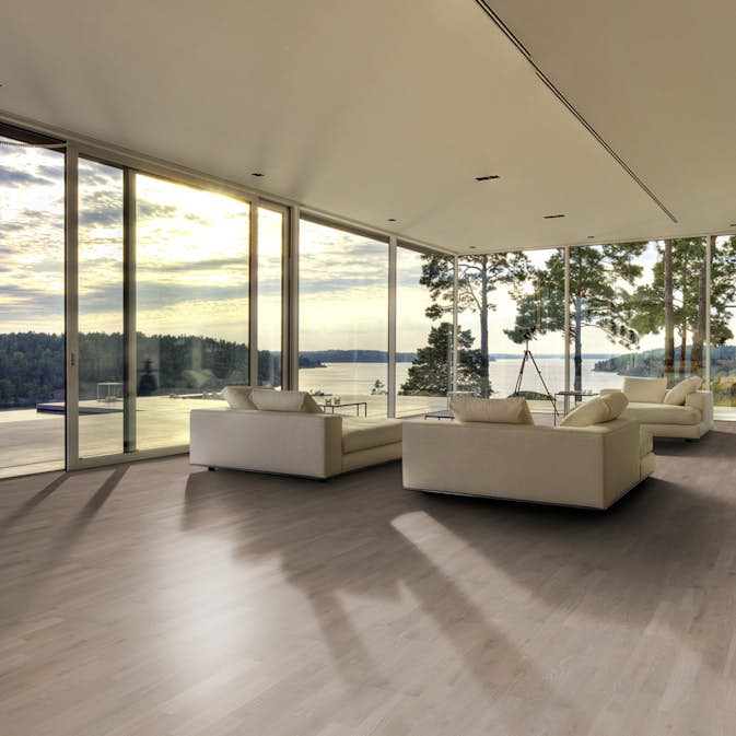 Kährs Alloy Ek är ett gråbrunpigmenterat, mattlackat 3-stavsgolv i ek med rustik stil.