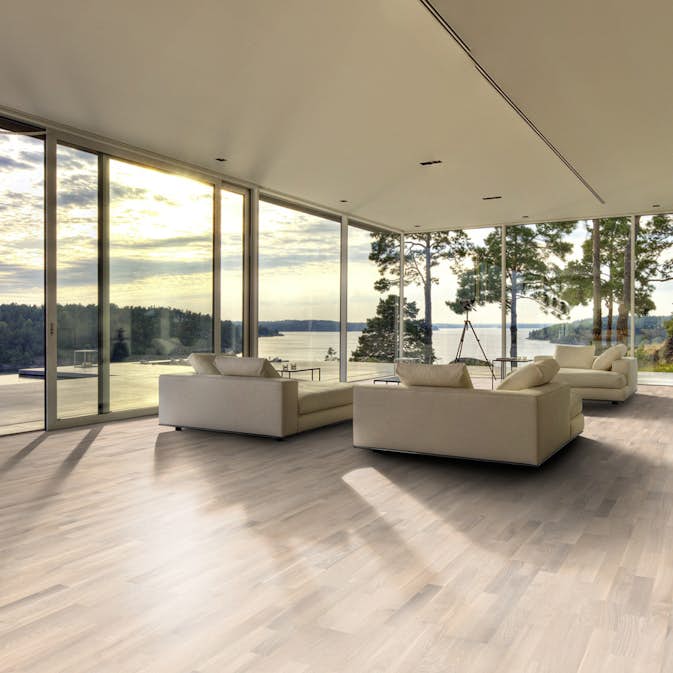 Kährs Ek Pale är ett vitpigmenterat, mattlackat 3-stavsgolv i rustik stil. Golvet bygger på