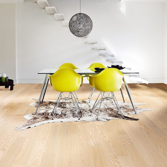 Kährs Falsterbo Vit Ask är ett elegant 2-stavsgolv i ask med vitpigmenterad, mattlackad yta.